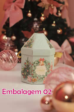 Esse ano vamos ter também a opção dos nossos mini chocotones, eles pesam aprox 500g cada um! São bem recheados e vão acompanhados de lindas caixas pra presente! *ESCOLHA SUA EMBALAGEM