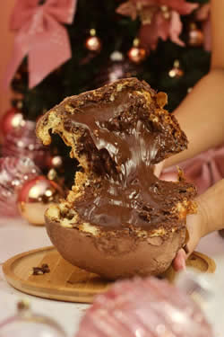 Um delicioso chocotone recheado com uma trufa de chocolate meio amargo. (Aprox 1kg)
